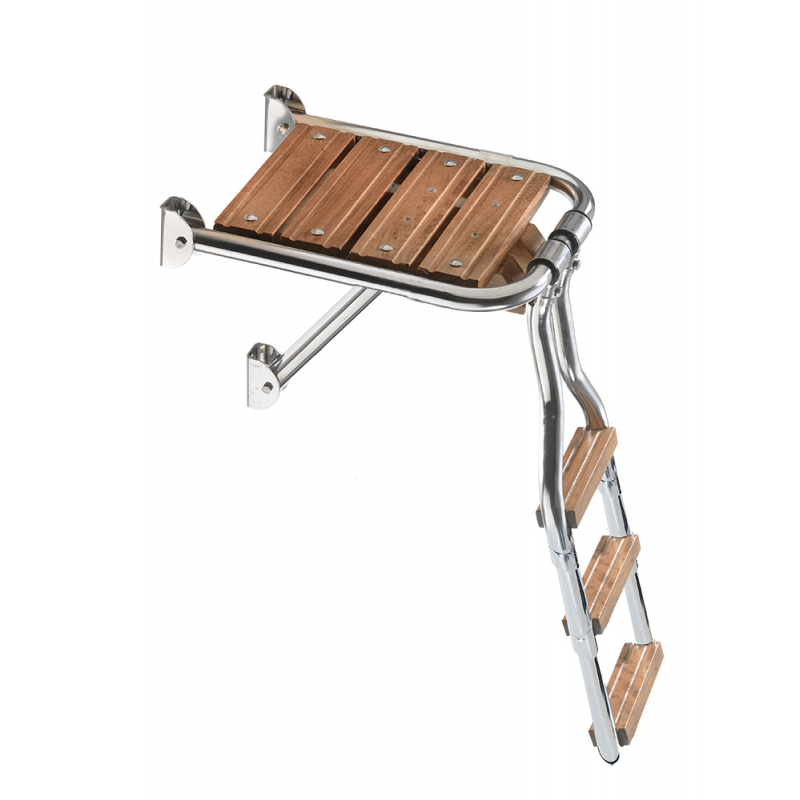 Plancetta di poppa in acciaio inox e legno marino, completa di scaletta pieghevole e ribaltabile art. 3030437.