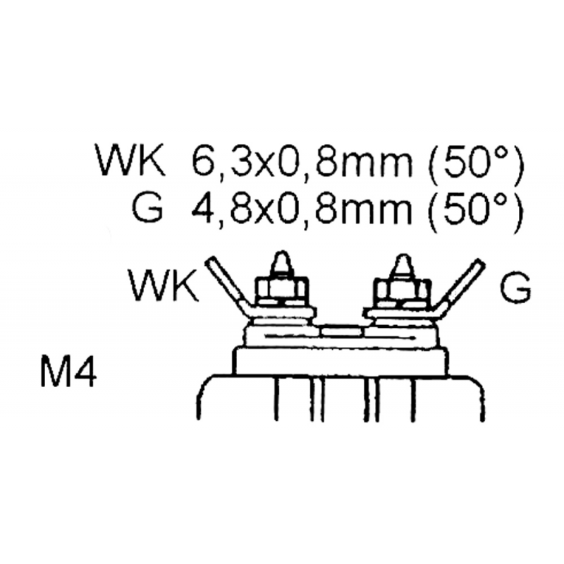 Contatto di massa sul bulbo e terminali WK-G con lamella per terminali femmina.