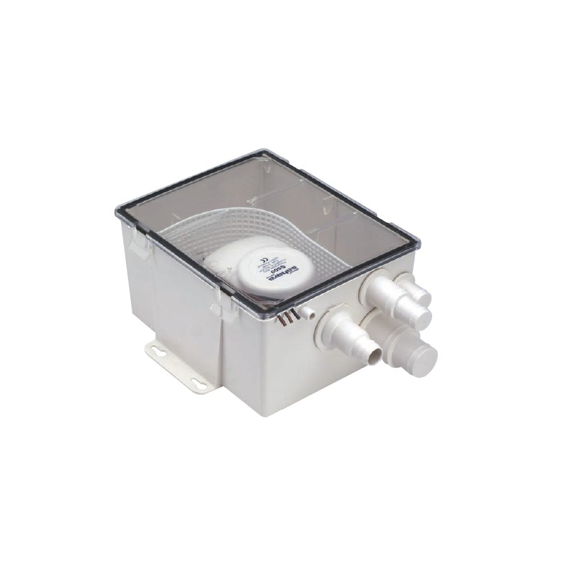 Sistema di scarico per la doccia composto da un pozzetto che contiene un interruttore galleggiante privo di mercurio e da una pompa. La pompa si avvia automaticamente e rimuove l’acqua accumulata mentre il pozzetto si riempie. Una valvola di ritegno nel collettore di aspirazione impedisce il funzionamento ciclico della pompa e riduce l’odore di acqua stagnante. Un coperchio in plastica trasparente con guarnizione consente una facile ispezione e manutenzione del filtro. E’ dotata di più portagomma di ingresso che possono essere tagliati su misura per adattarsi alle diverse dimensioni dei tubi (da 3/4” a 1-1/2”) consentendo il collegamento di più scarichi. Il ø del portagomma di scarico è sempre da 3/4”. Utilizzabile per drenare docce, lavandini, lavelli della cambusa, ecc.