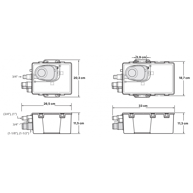 Sistema di scarico per la doccia composto da un pozzetto che contiene un interruttore galleggiante privo di mercurio e da una pompa. La pompa si avvia automaticamente e rimuove l’acqua accumulata mentre il pozzetto si riempie. Una valvola di ritegno nel collettore di aspirazione impedisce il funzionamento ciclico della pompa e riduce l’odore di acqua stagnante. Un coperchio in plastica trasparente con guarnizione consente una facile ispezione e manutenzione del filtro. E’ dotata di più portagomma di ingresso che possono essere tagliati su misura per adattarsi alle diverse dimensioni dei tubi (da 3/4” a 1-1/2”) consentendo il collegamento di più scarichi. Il ø del portagomma di scarico è sempre da 3/4”. Utilizzabile per drenare docce, lavandini, lavelli della cambusa, ecc.