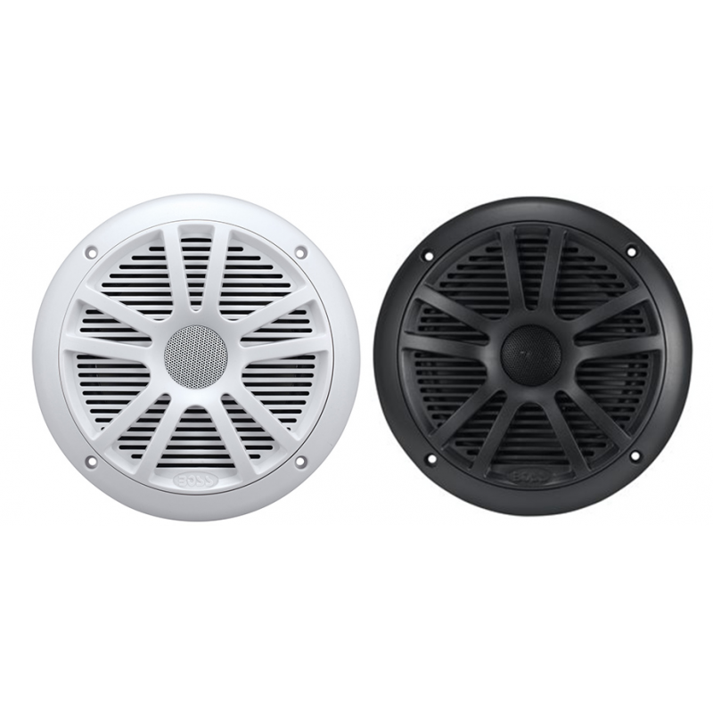 Coppia altoparlanti MR6 in ABS bianco, coassiali a 2 vie, potenza max 180W, impedenza 4 Ohm, risposta frequenza 80Hz-20Khz.
