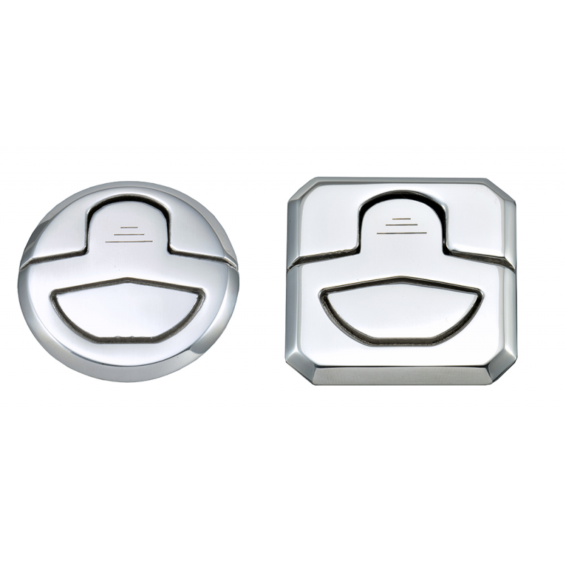 Alzapagliolo antivibrante in acciaio inox AISI 316 lucidato a specchio, stagno. Maniglia a filo dotata di molla, fissaggio tramite viti non a vista.