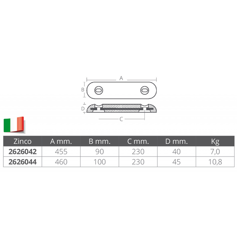 ANODO FAIRLINE IN ZINCO MM.460x100x45h