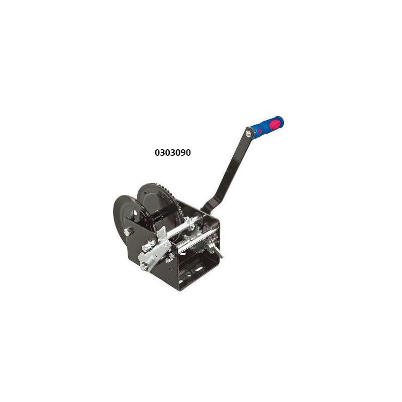 Argano Manuale fabbricato in acciaio verniciato nero con freno. Fornito senza cavo. I carichi di trazione si riferiscono ad una sola spira di cavo.