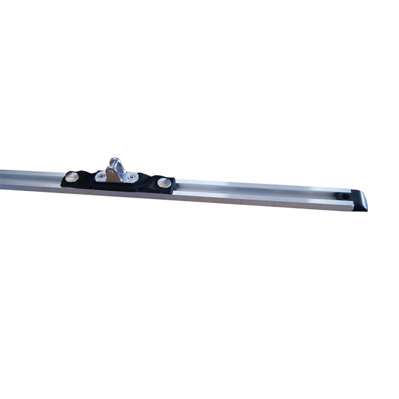 Attacco scorrevole per capottine e tendalini universali, rotaia in lega leggera completa di cursore, supporto, fermo e terminali in plastica, montaggio in piano.