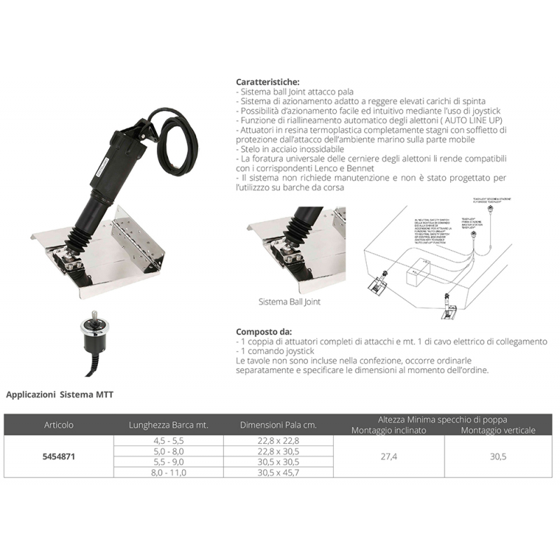 L’uso dei correttori di assetto elettromeccanici permette all’imbarcazione di mantenere costantemente un assetto adeguato alle varie condizioni di navigazione, consentendo un maggior rendimento del motore ed un sensibile risparmio di carburante. Pale non incluse nella confezione.