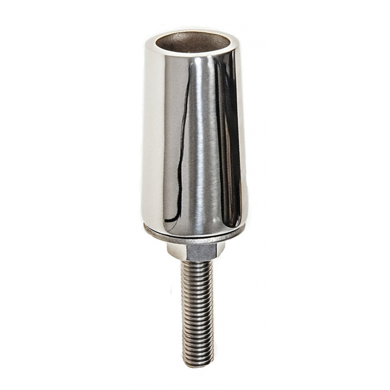 Base conica microfusa dritta 90°, in acciaio inox AISI 316, lucidata a specchio. Fissaggio con prigioniero.