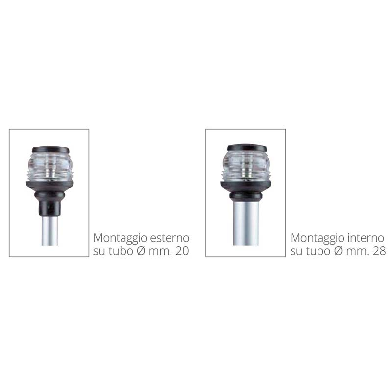Basetta in nylon per applicare l’art. 4080360/1/5 su tubo ø esterno mm. 20 oppure ø interno mm. 28. Omologati R.I.Na. e M.M.M per imbarcazioni fino a 20 mt.