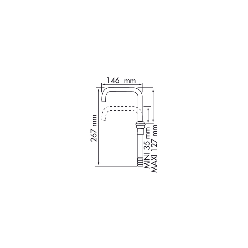 Beccuccio telescopico realizzato in alluminio anodizzato e plastica, girevole a 360° e telescopico. Otturatore regolabile in nylon incluso. Per tubo ø mm 10 -15