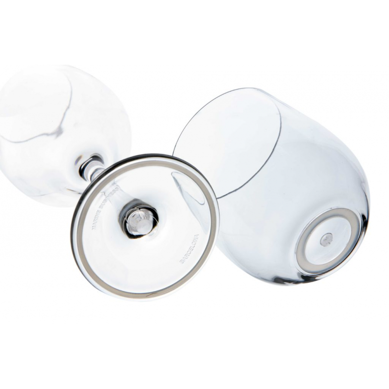 Bicchieri realizzati in Tritan, materiale plastico infrangibile ad alta trasparenza e brillantezza dotati un anello antiscivolo alla base che ne impedisce lo scivolamento sul tavolo.