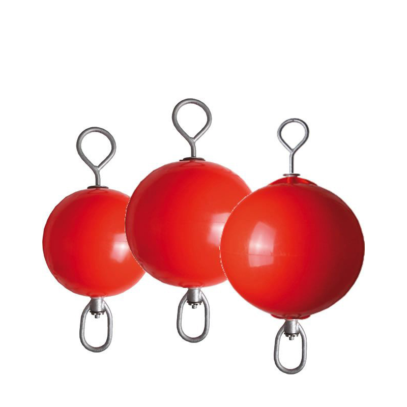 Boa da ormeggio gonfiabile colore arancio, tirante e girella terminale in acciaio zincato.