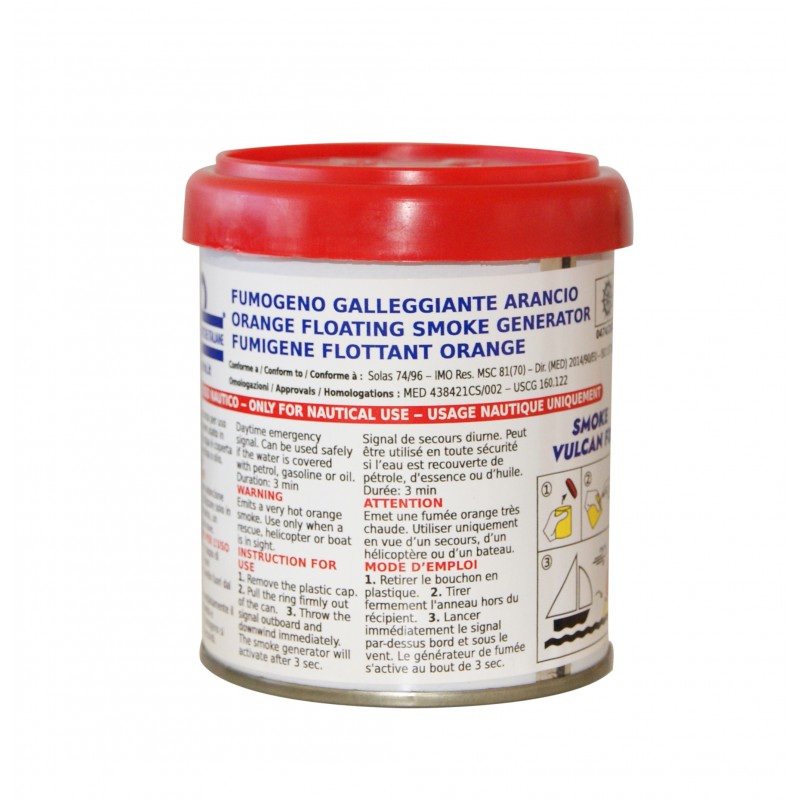 Boetta fumogena galleggiantearancione, ad alta visibilità per segnalazioni diurne.