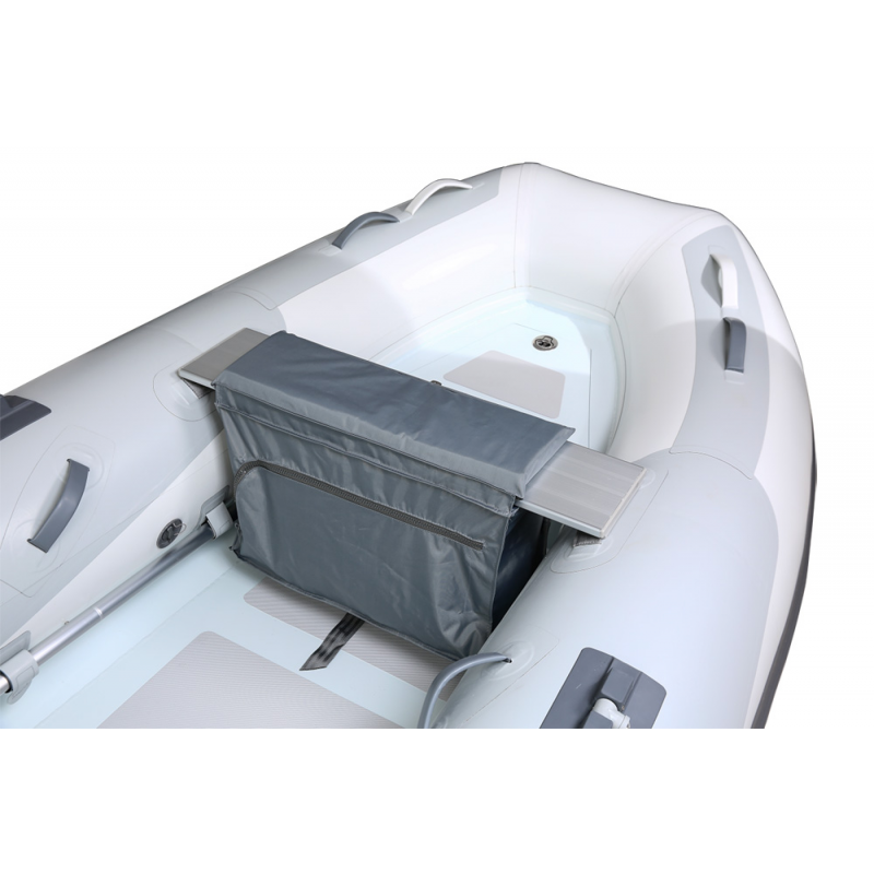 Sacca da viaggio in PVC grigio per tender e piccole imbarcazioni muniti di seduta rimovibile, dotata di cuscino in schiuma per un migliore comfort e di ampia tasca con zip. Si fissa inserendo la seduta rimossa nell’apposita asola.