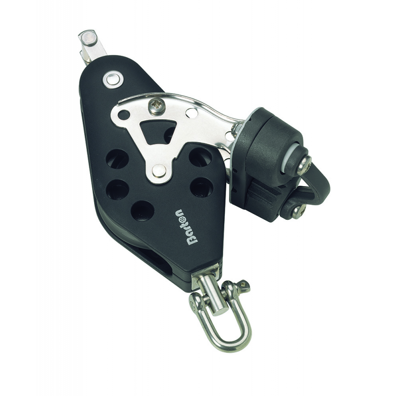 SERIE 2 - Bozzello a violino girevole con arricavo e strozzascotte, ideale per applicazioni nautiche che richiedono alta resistenza e affidabilità. Questo bozzello è progettato per gestire cime con un diametro massimo di 8 mm, garantendo un’eccellente performance sotto sforzo. La sua struttura robusta permette di sopportare un carico di lavoro massimo di 370 kg, con un carico di rottura di 740 kg, assicurando sicurezza e durabilità nel tempo. Le dimensioni compatte della puleggia e la sua lunghezza totale lo rendono versatile e facile da installare in diversi contesti nautici.