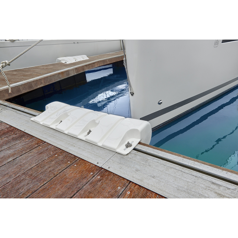 Parabordo in PVC bianco resistente ai raggi-UV. Di facile installazione, si applica direttamente ai bordi dei pontili o dei catway evitando danni accidentali, alla struttura o all’imbarcazione, dovuti a manovre errate o da condizioni di mare proibitive. Pressione max di gonfiaggio 0,1 bar (1,45 psi)