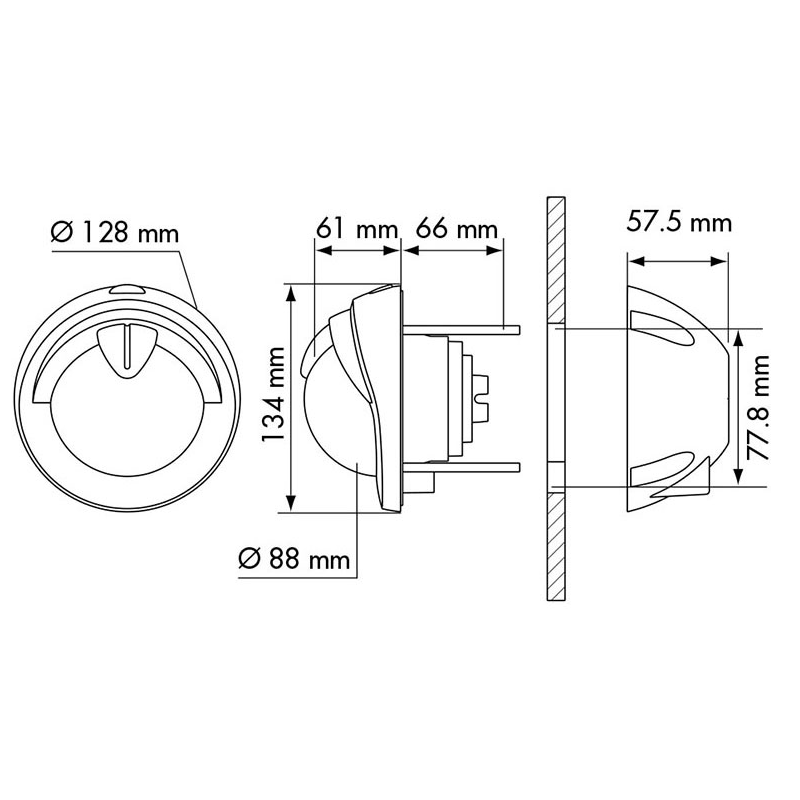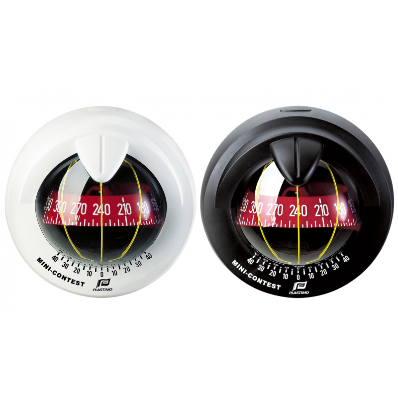 Bussola Mini Contest. Rosa rossa con graduazione bianca di 5°, per barche a vela fino a 9 mt., illuminazione di serie 12-24 V. LED. Provvista di inclinometro e cover. Installazione ad incasso su paratia verticale o sull’albero (con kit albero opzionale art. P55656).