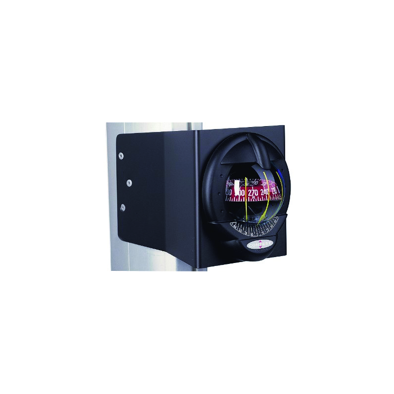 Bussola Contest 101. Rosa rossa con graduazione bianca di 5°. Doppia lettura lato pozzetto e lato cabina. Illuminazione di serie 12-24 V. LED. Provvista di inclinometro e cover. Installazione ad incasso su paratia verticale o sull’albero (con kit albero opzionale).