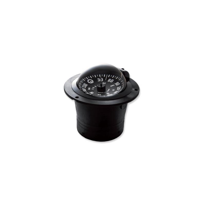 Bussola serie Urania BU1. Sospensione cardanica interna. Compensazione incorporata. Illuminazione di serie 12V. Schermo antiriflesso. Versione normale e alta velocità (superiore a 25 nodi). Rosa nera con graduazione bianca, installazione ad incasso su piano orizzontale.