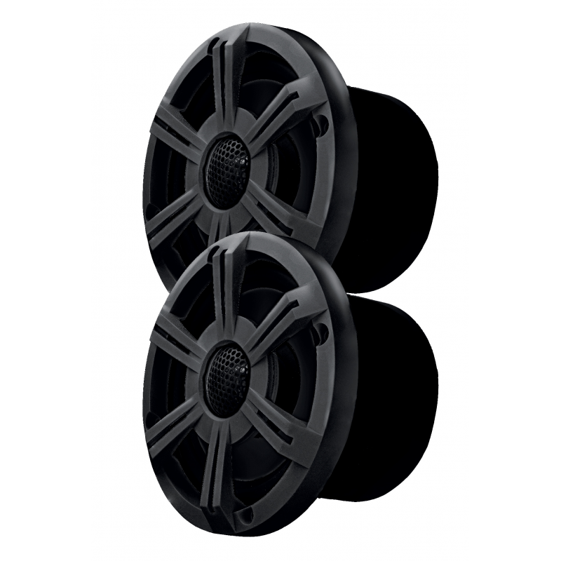 Coppia altoparlanti Bluetooth in plastica nera anti UV, impermeabili IP66. Collegabili allo smartphone. Portata del Bluetooth mt 8.