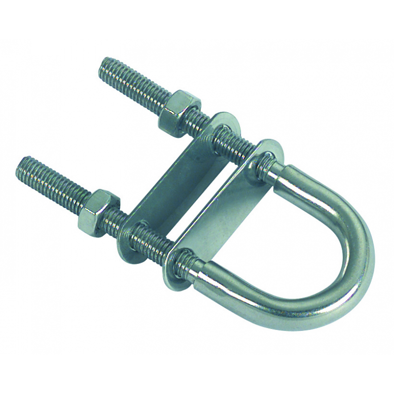 Cavallotto ad ”U” in acciaio inox AISI 316 ricavato dal pieno, con due piastrine e due dadi.