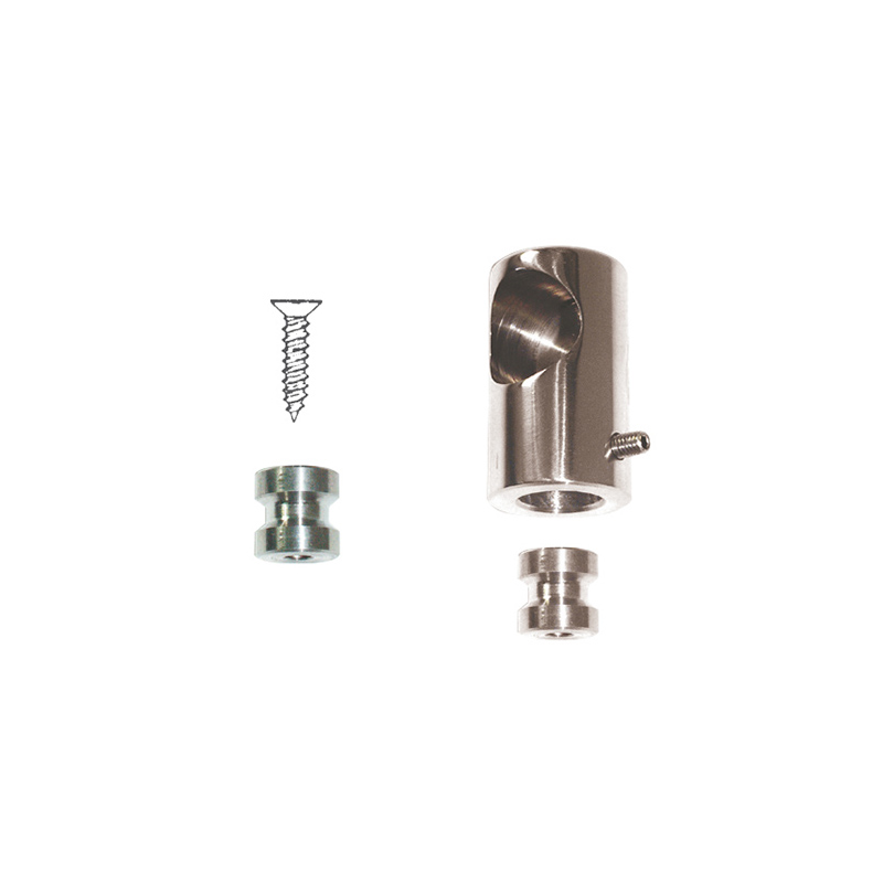 Raccordo centrale per corrimano in acciaio inox AISI 316 ricavato dal pieno. Permette il montaggio con una semplice vite adatto dove non è possibile il fissaggio con prigioniero.