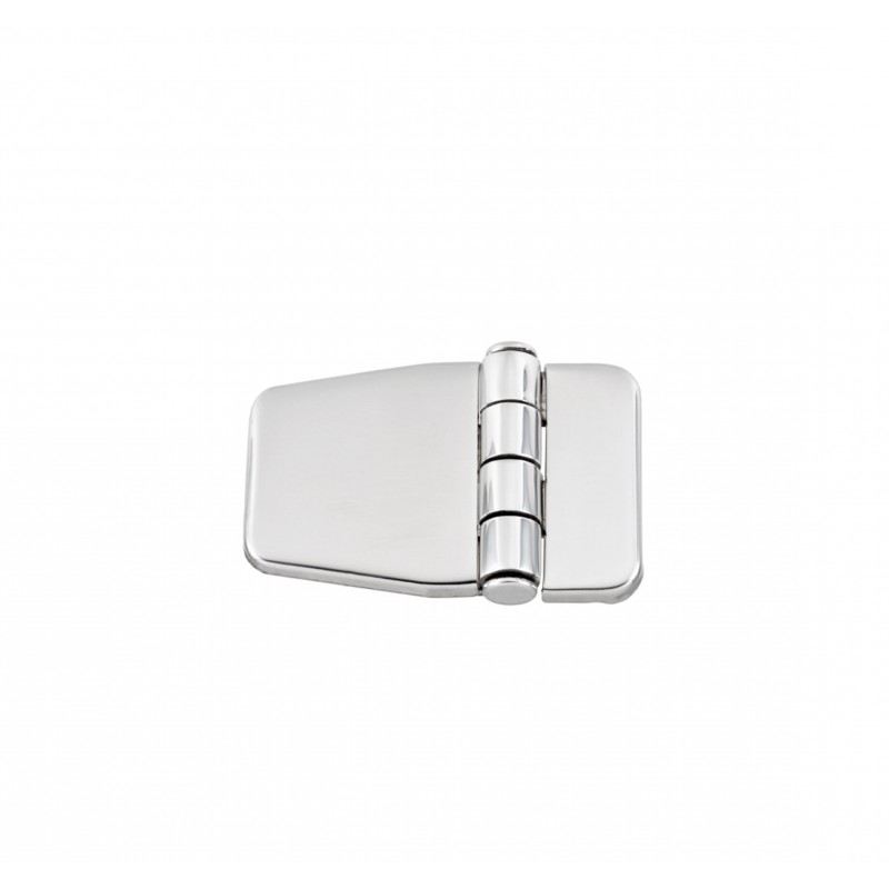 Cerniere con copertura in acciaio inox AISI 316 spessore mm.2. Tramite il nastro biadesivo 3m vhb pre montato sulla copertura stessa, permette di nascondere le viti della cerniera dopo il montaggio, con grande effetto estetico.
