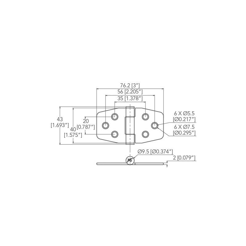 Cerniere in acciaio inox AISI 316 frizionate e antivibrazione, asse centrale frenato spessore mm.2, perno ø mm.9,5. Permettono il controllo dell’apertura e della chiusura, anche parziale, dello sportello su cui sono montate.