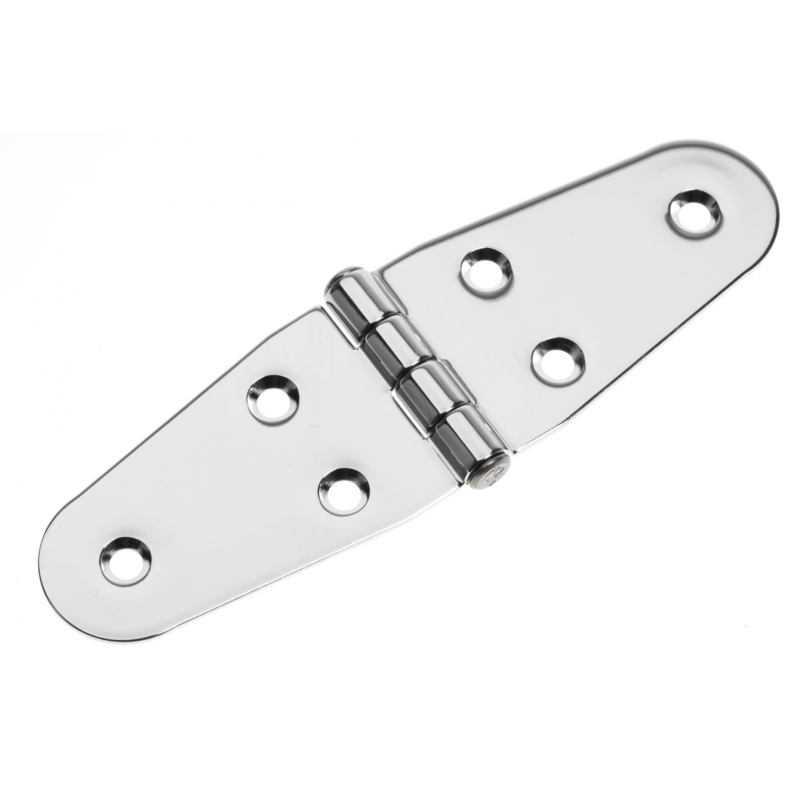 Cerniera lucidata a specchio in acciaio inox AISI 316. Spessore mm. 2, perno ø mm. 9 intestato