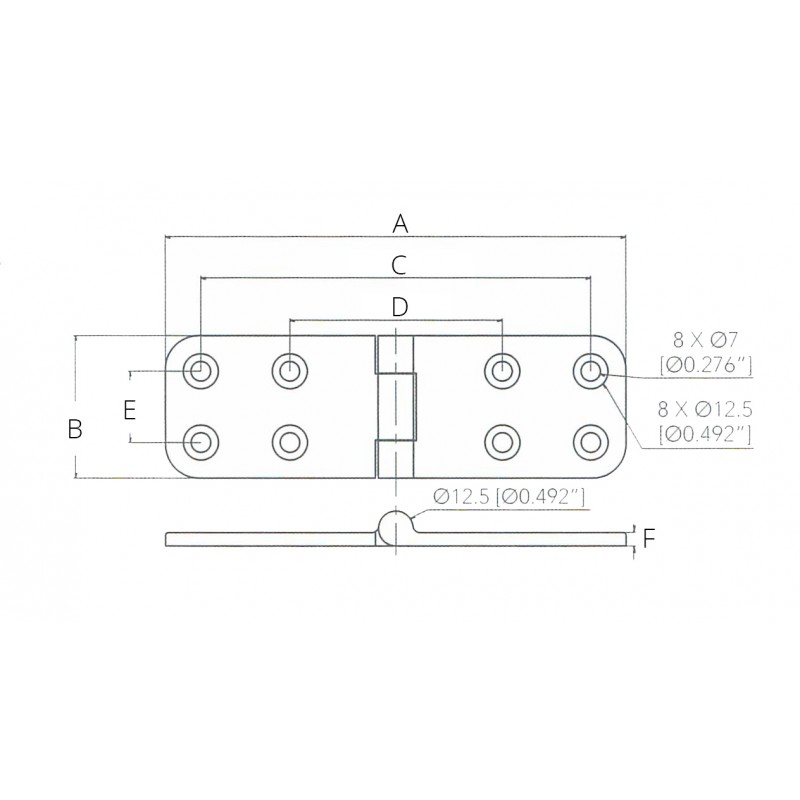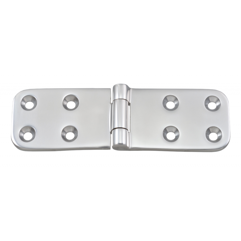 Cerniera lucidata a specchio in acciaio inox AISI 316. Spessore mm. 4,8. Grazie alla sua particolare robustezza è indicata per sportelli e gavoni di grandi dimensioni.