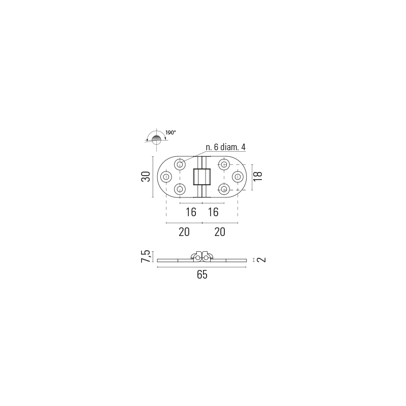 Cerniera in ottone con arresto, per tavoli.