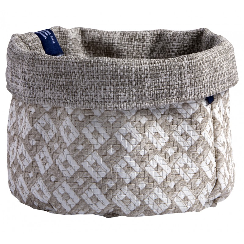in tessuto poliestere reversibili ed impermeabili, resistenti al sole e facili da pulire. Interamente realizzati a mano, possono essere utilizzati come porta creme e saponi o in cucina e a tavola come cestino per il pane, portafrutta o più semplicemente come svuota tasche.