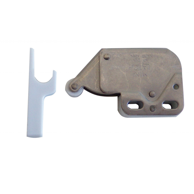 Chiusura a scatto ”Mini Latch” ideale per ante e sportelli, costruita in acciaio inox e nylon. Per aprire l’anta premere sulla superficie della stessa, la pressione determina il rilascio delle molle e l’anta si apre automaticamente. Per chiudere l’anta premere delicatamente contro la sua superficie.
