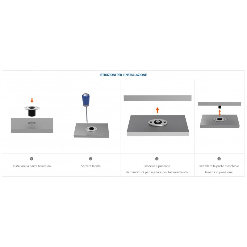 Sistema di fissaggio in nylon e gomma a basso profilo per arresto di portelli, prendisole, gavoni, schienali, ecc…
