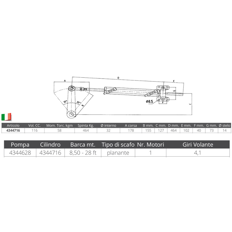 Cilindro in alluminio, bilanciato (uguale numero di giri da mezza corsa a fine corsa).
