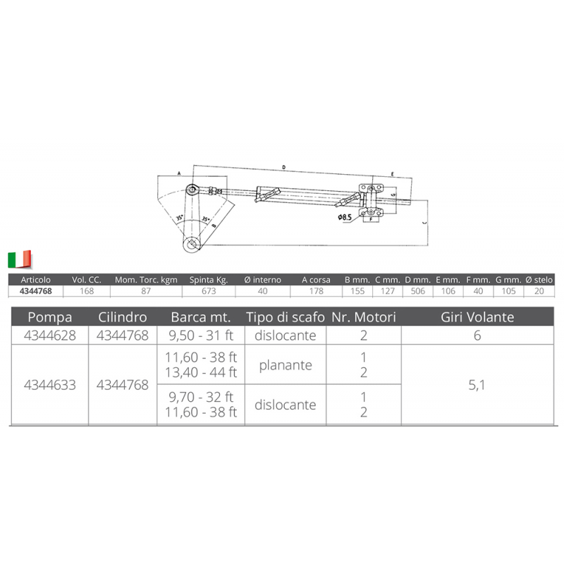 Cilindro in alluminio, bilanciato (uguale numero di giri da mezza corsa a fine corsa).