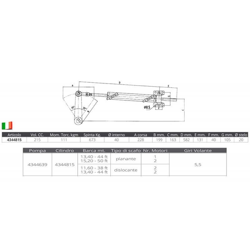 Cilindro in alluminio, bilanciato (uguale numero di giri da mezza corsa a fine corsa).
