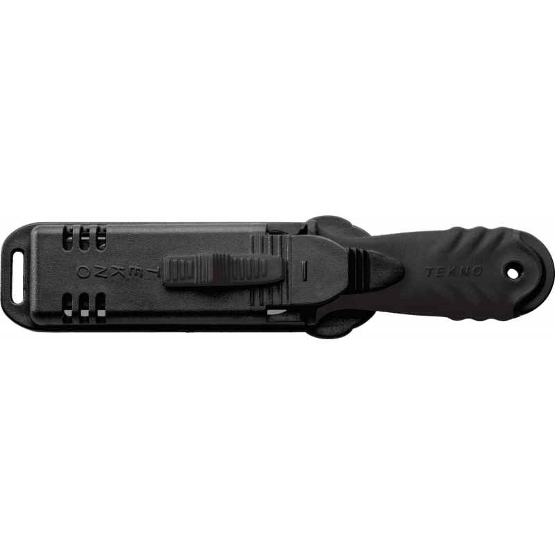 Coltello con lama in acciaio inox con sega. Impugnatura in PP con TPE sovrastampato. Completo di fodero.
