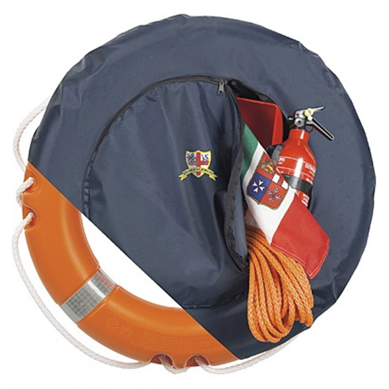 Contenitore per salvagente anulare (art. 1010004) e borsa integrata con cerniera per contenere la dotazione di sicurezza o altri accessori