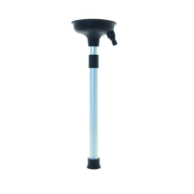 Cuffia in gomma con innesto rapido dell’acqua (tipo giardinaggio) per lavaggio motori entrobordo. Tubo telescopico in lega leggera, per adattarsi alle varie altezze da terra della presa a mare.