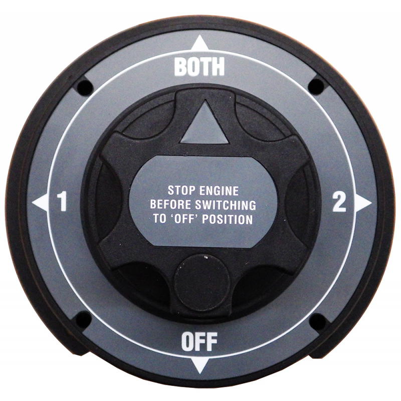 Deviatore staccabatteria per usare una o più batterie e staccare la corrente. Etichette fluorescenti visibili al buio.