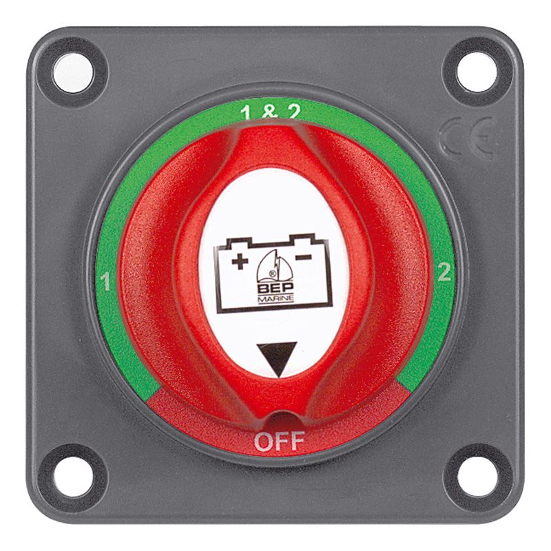 Deviatore Stacca batteria BEP il sistema brevettato permette il montaggio modulare di più interruttori. La manopola non può essere rimossa nelle posizioni 1-2 e OFF, ma solo ruotandola in senso antiorario di 45°. Montaggio in piano o ad incasso.