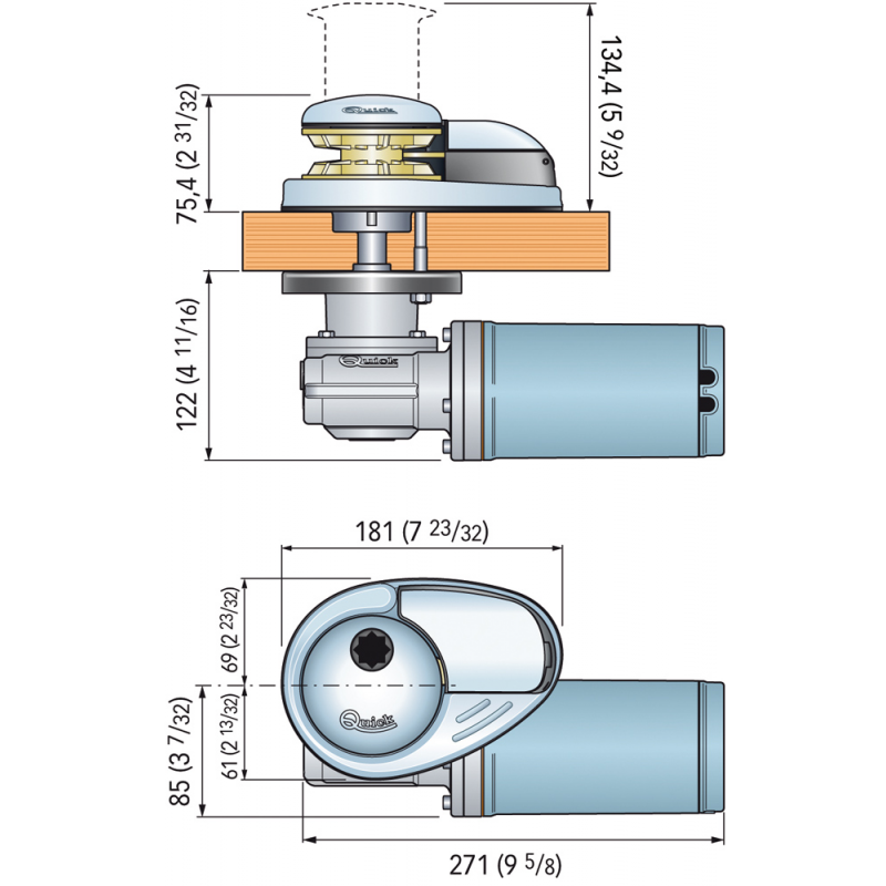 DP1 - Salpa ancora verticale con base, campana e coperchio barbotin in acciaio inox AISI 316 e internamente in materiale composito per offrire resistenza e leggerezza allo stesso tempo, sistema manuale di caduta libera della catena, sportellino d’ispezione, motore stagno, riduttore in alluminio anodizzato.