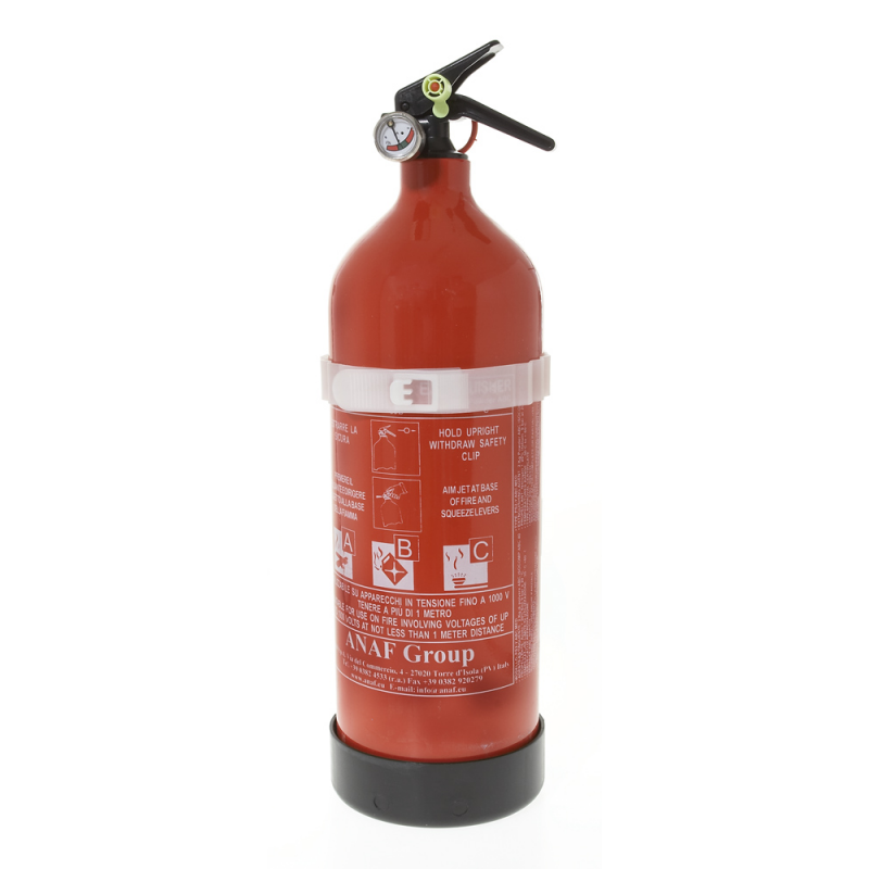 Estintore in alluminio per uso navale imbarcazioni da lavoro, pesca e mercantili, completo di supporto. Certificati MED 2014/90/EU, CE 0029, EN3, P.E.D. 2014/68/EU.