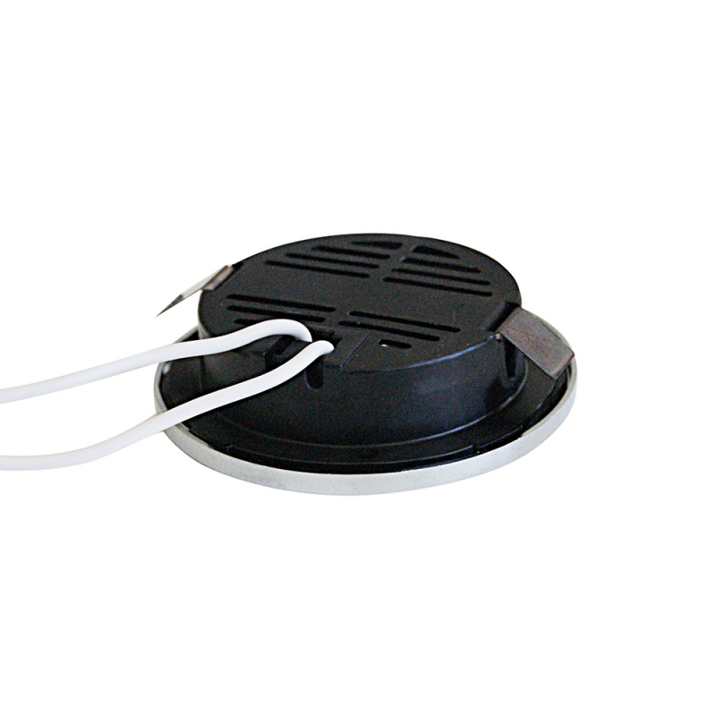 Faretto alogeno in materiale termoplastico ad incasso, con vetro di protezione sabbiato, completo di lampadina alogena. Dotato di 3 fori di fissaggio.