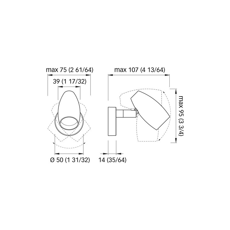 Faretto orientabile da interno fabbricato in alluminio con finitura cromata, dotato di interruttore. Luce bianca calda (140 lumen). Fissaggio a parete con viti. Sensibile alla polarità.
