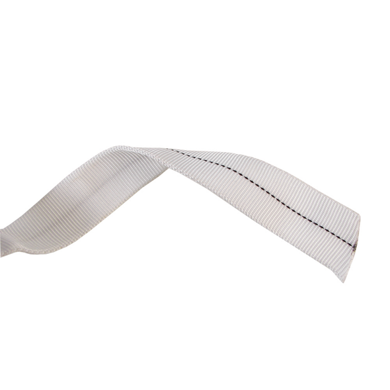 Fascia tubolare in poliestere bianco con segnalino blu, morbido e resistente, ideale per lifeline ed usi vari.