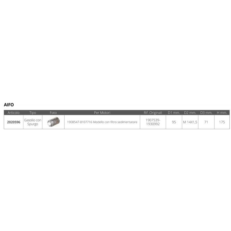 Filtro gasolio AIFO Lombardini, dotato di spurgo.