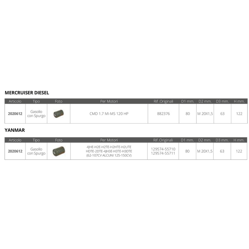 Filtro gasolio per motori MERCRUISER YANMAR, dotato di spurgo.