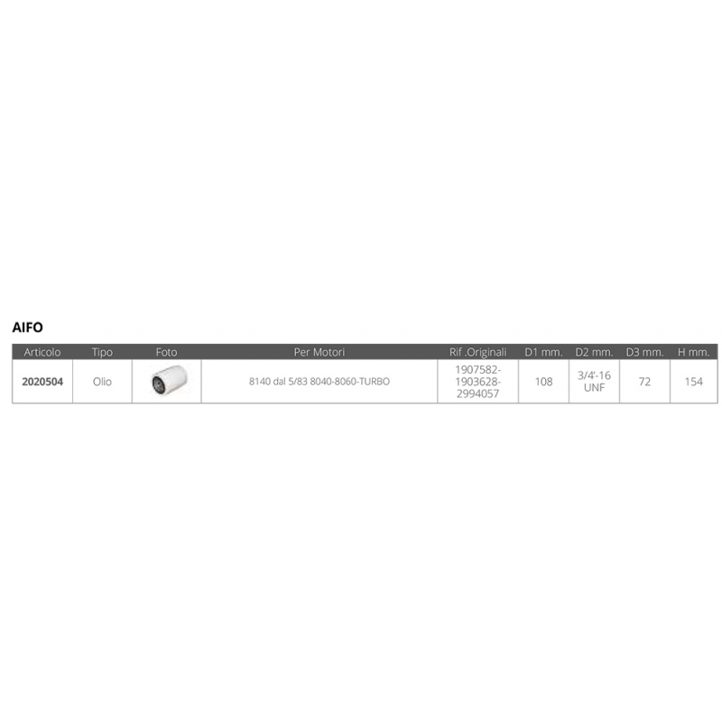 Filtro olio AIFO-LOMBARDINI, progettato per garantire la massima efficienza e durata. Questo filtro è compatibile con specifici modelli di motori, assicurando una filtrazione ottimale dell’olio e contribuendo al mantenimento delle prestazioni del motore nel tempo.