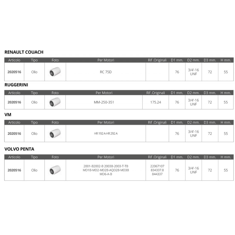 FILTRO OLIO RENAULT PERK. VM VOLVO